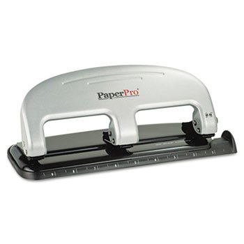 Punches cleaner, easier and absolutely no jamming. Low force design makes this punch 50% easier to use than standard hole punches. Punches through up to 20 sheets of paper with advanced cutting dies. Contains PaperPro's jam-free technology. Handle locks in down position for easier storage. Internal waste chamber with easy-to-empty rear positioned door. Convenient paper guide. Sheet Capacity: 20; Operating Method: Manual; Number of Holes: 3; Hole Diameter: 9/32 in. PaperPro; Punches; Punches-Three Hole; Bore; Puncture; Pierce; Desktop; Holes